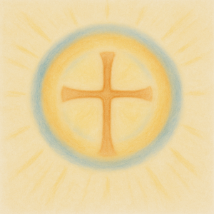 Niet een statisch midden dat het beweeglijke in de weg staat, maar een midden dat uit de beweging zelf geboren wordt — een levend midden dat richting en houvast schenkt aan de ziel. Het helpt ons telkens opnieuw, wanneer het leven te zwaar of te beklemmend wordt, of juist te chaotisch en onvoorspelbaar. Het geeft ons een centrum dat niet stil staat, maar dat met ons meebeweegt — een midden dat ons vergezelt op al onze levenswegen. Het kruis is dus niet slechts een symbool van het christelijke, van de daad van Christus, maar een levende, toestromende kracht die ons helpt een bezield midden te vormen in onszelf.